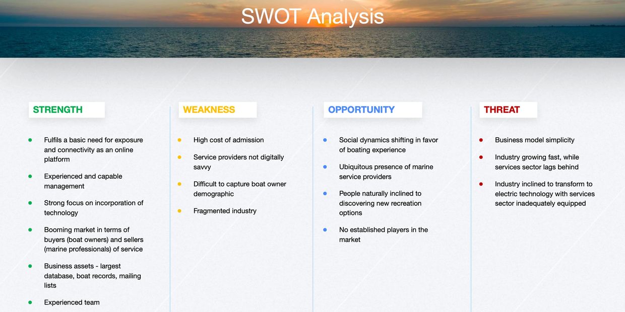 Regarding the SWAT analysis… I don’t think that I can talk for the big ships industry, containers carriers, oil tankers, bulkcarriers… but for sure I can give you (above) the SWAT analysis of boating industry.