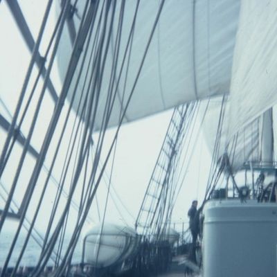 I was a 14 year old Sea Cadet and had never been to sea before, it was my first time out of my own country. I had to climb the masts to put the sails down and bring them up, most of the crew were teenagers like myself.
